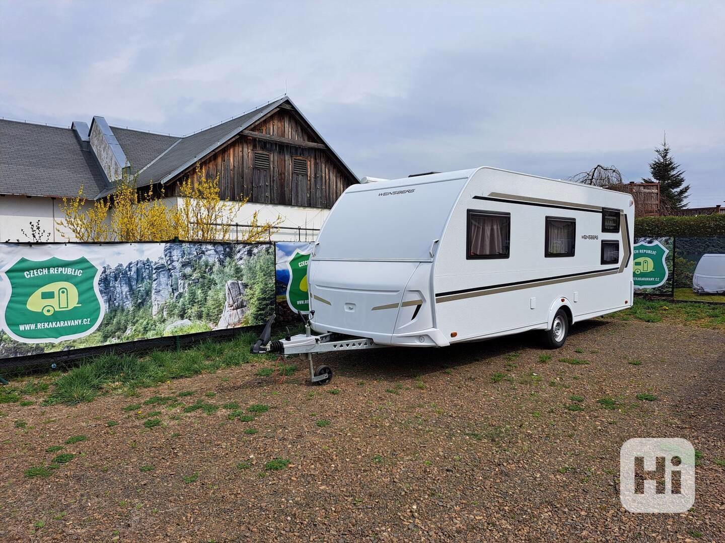 Značka Weinsberg CarOne 550 QDK, Rok výroby 2023, Celková hmotnost 1 700 kg, Provozní hmotnost 1.225 kg, Doložnost 475 kg, Celková délka 7.600 mm, Délka karavanu bez oje 6.200 mm, Délka oje 1.400 mm, Celková šíře 2.250 mm, Celková výška 2.750 mm, Maximální rychlost dle TP 100 km/hod, Počet osob - spaní / lůžka 5 (2x palandy, 2x letiště a 1,5 lůžka v kuchyni), Palandy 2x Markýza kazetová střešní 4.400 mm délka a 2.500 mm výsuv, THULE Omnistor, Plynový sporák se 3 plotýnkami, Dřez s pákovou sklopnou / pevnou baterií pevná, Lednice velká 12V/230V/plyn, Plynové topení, Rozvod topení po karavanu – rozfuk, Automatický piezzo zapalovač na plynové topení, Elektrický bojler s napojením na rozfuk 230V, Kazetové WC, Zásobník na splachovací vodu do WC z centrální nádrže, Elektrické splachování WC, Koupelna se sprchou – pevná, Velká nádrž na vodu 70l, Nádrž na odpadní vodu přenosná, Thermo roletky, Moskytiéry, Klimatizace střešní Kronings + DO 230V, Nájezdová brzda se stabilizátorem KNOTT vč. zámku, Solární panel cca 160W, Trakční baterie AGM, Trakční baterie, box na baterii a nabíječka 230V, Led osvětlení – exteriér, Led osvětlení – interiér, Plechové disky / počet děr ET 30 / 5 díra / 5 1/2 J x 14H2, Pneumatiky / rozměr 185 R 14 C / 102/100 S, Rezerva, Držák na plynovou lahev / počet uchycení 2x, Duo control - crash ventil vč. filtrů,