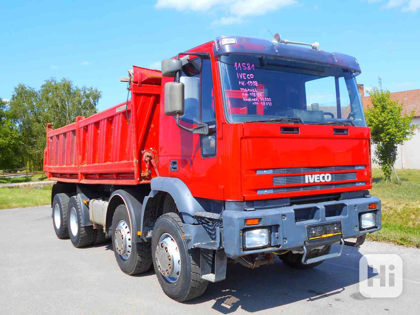 Výbava: manuál | ABS | tachograf | el. okna | počítadlo km | pérování ocel | brzdy bubnové | ASR | stav. volant | stav. sedačka | šíbr | nápravy 8x4 | pneu přední: 60 %, pneu prostřední: 30 %, pneu zadní: 20 % | otáčkoměr | rádio |
