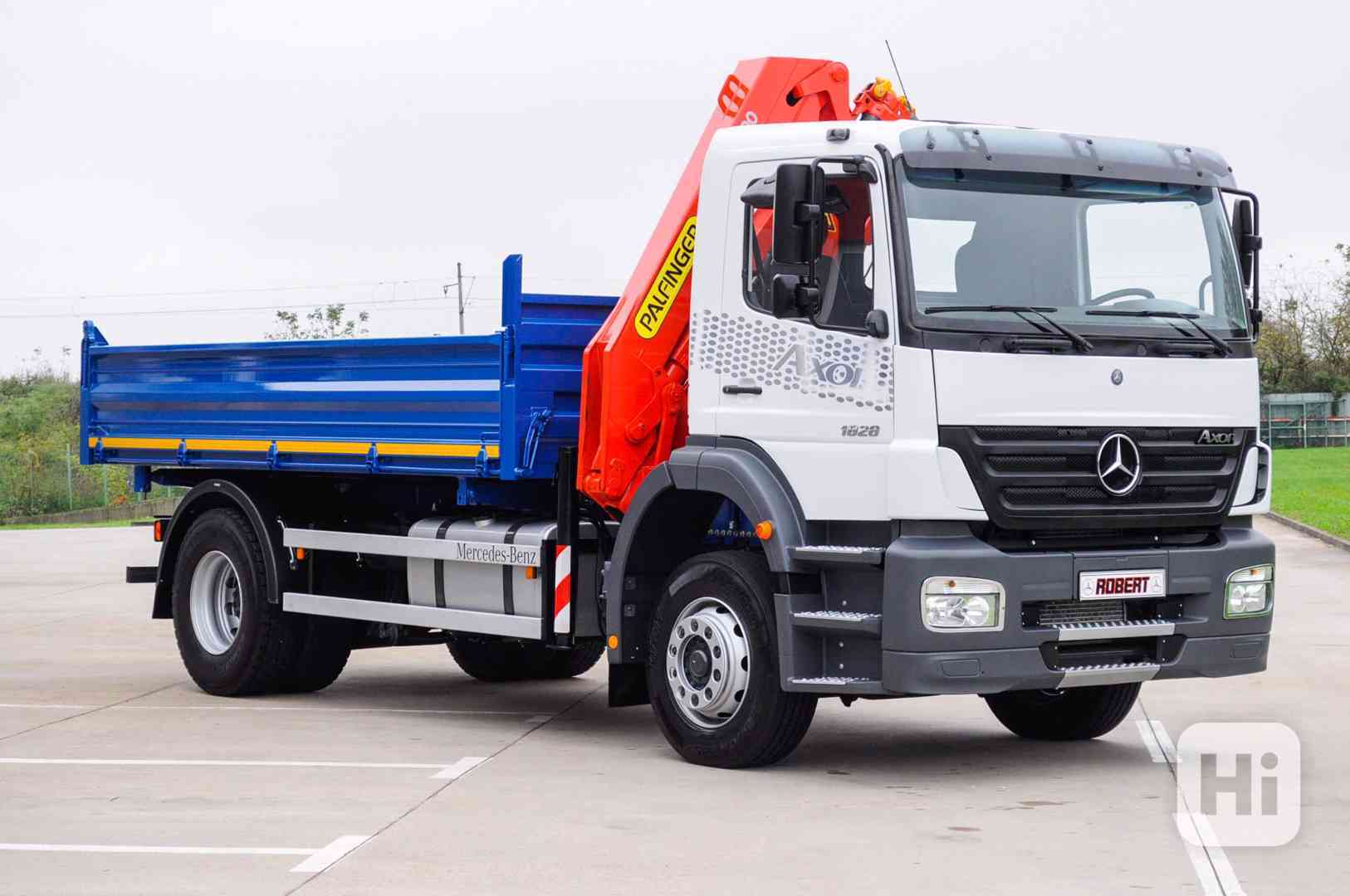 Prodám Mercedes-Benz Axor 1828 - Masívny / silný třístranný sklápěč - vyklápeč + kvalitná / veľmi silná a dlhá hydraulická ruka značky PALFINGER PK10500 v TOP stave. Euronorma : Euro 4