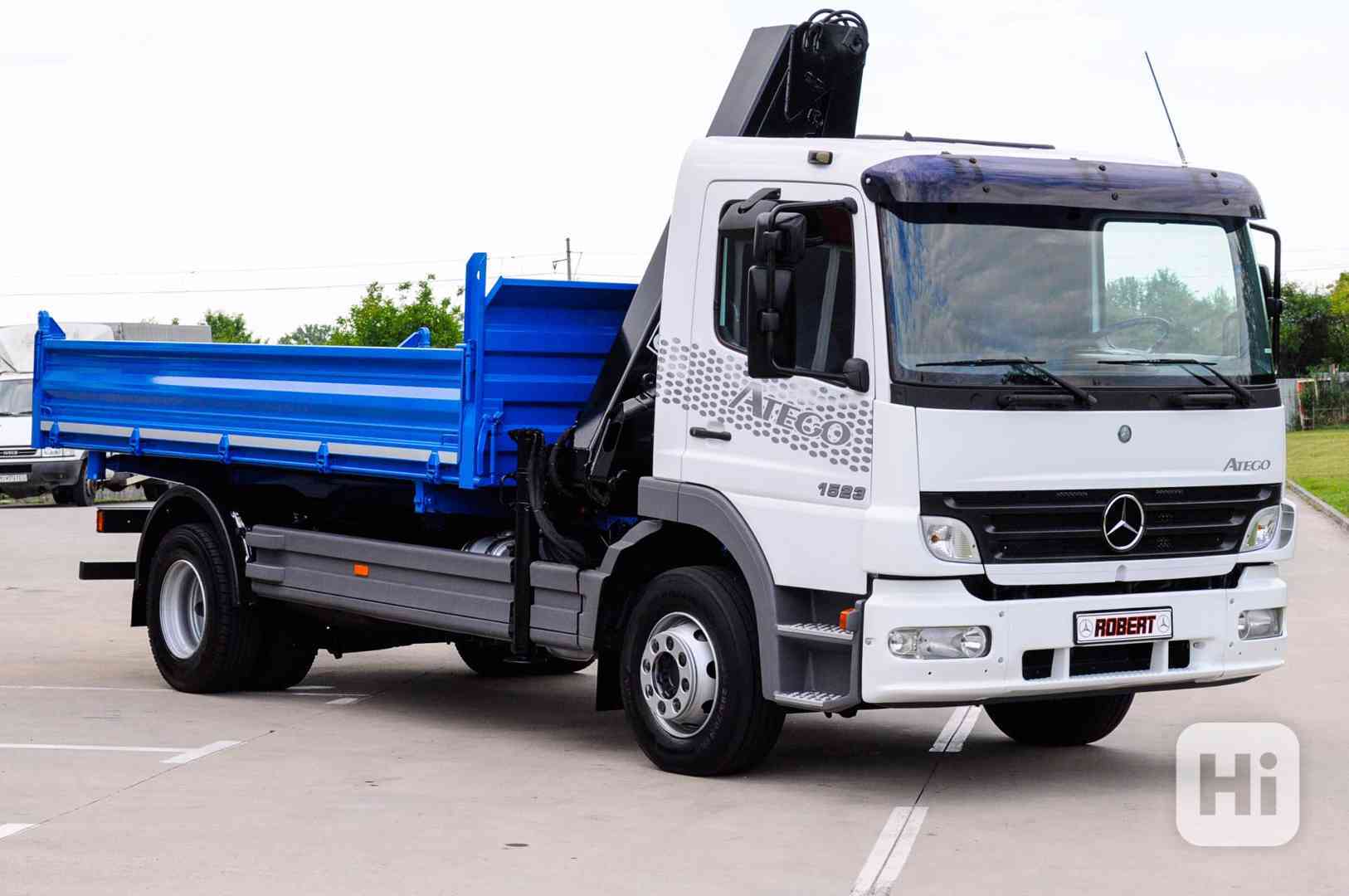 Prodám Mercedes-Benz Atego 1523 - (Nákladné vozidlo - auto ) Masívny / silný třístranný S3 sklápěč - vyklápeč s hydraulickou rukou - kvalitná / veľmi silná a dlhá hydraulická ruka / rameno značky HIAB 100 v TOP stave.