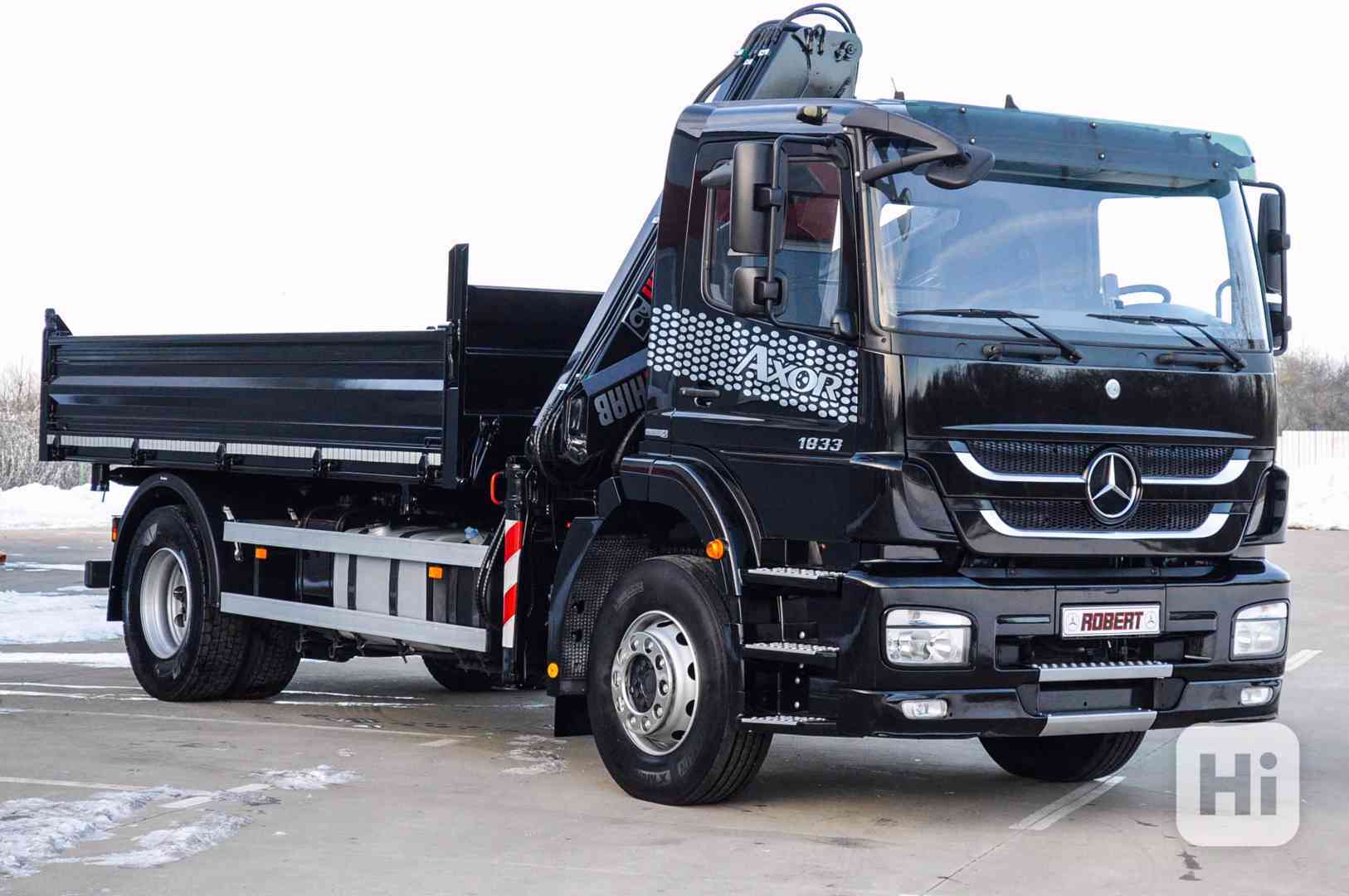 Prodám Mercedes-Benz Axor 1833 BlueTec5 - (Nákladné vozidlo - auto ) Masívny / silný třístranný S3 sklápěč / vyklápeč s hydraulickou rukou - kvalitná / veľmi silná a dlhá hydraulická ruka / rameno značky HIAB 102 v TOP stave. Euronorma : Euro 5